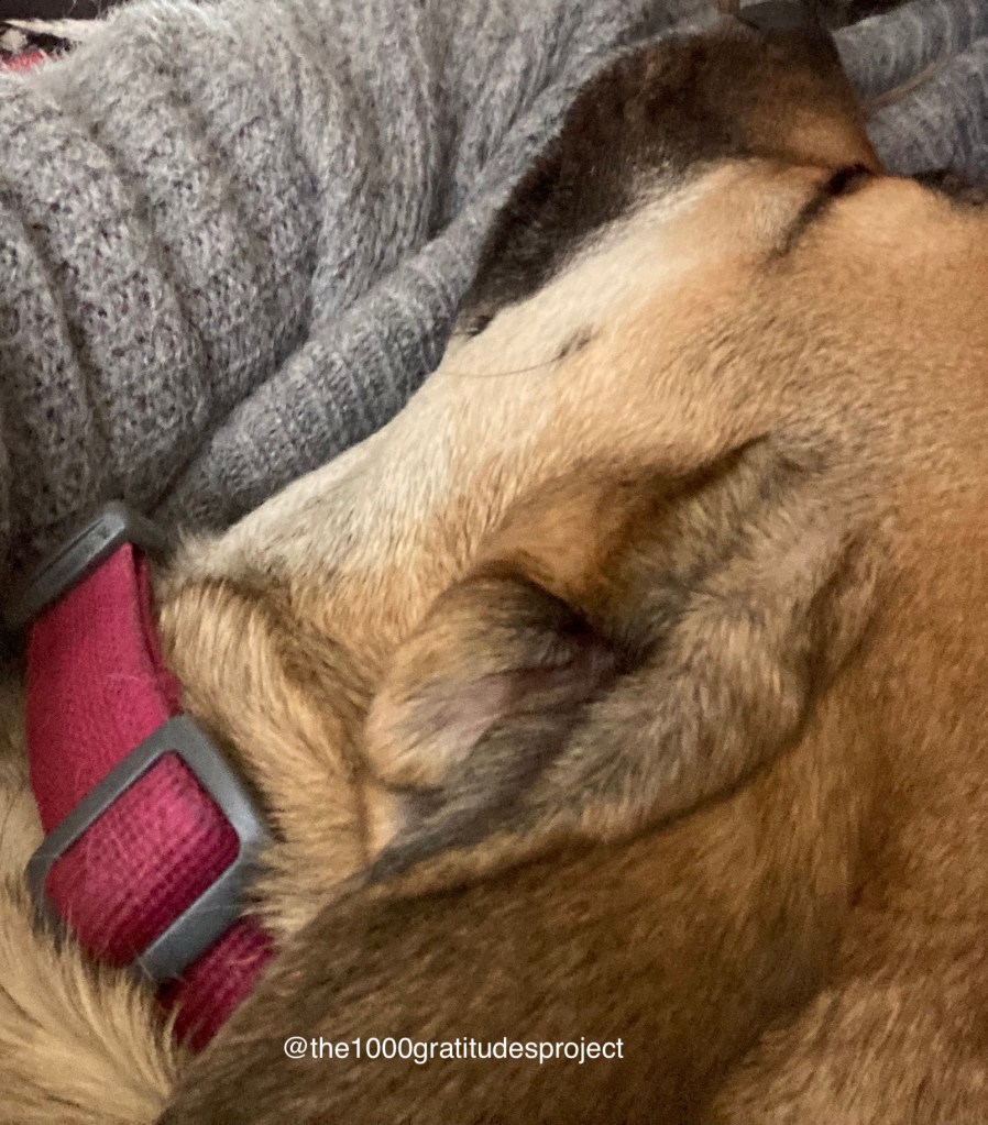 She always feels like a gift – she is the sweetest and snuggliest little thing, happiest not just in the room with us, but on our laps or climbing up so she can put her head on our shoulders, even though she’s too big to be a lapdog. She has brought so much joy into our lives.
